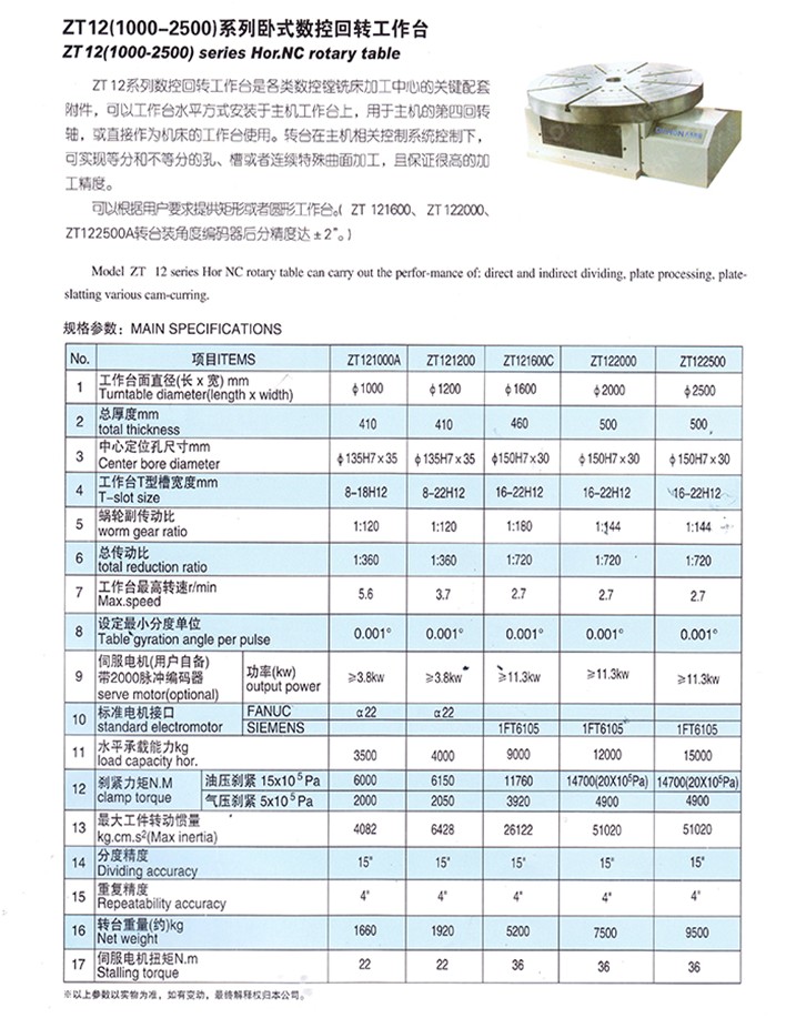 ZT12(1000-2500)系列臥式數(shù)控回轉(zhuǎn)工作臺(tái)
