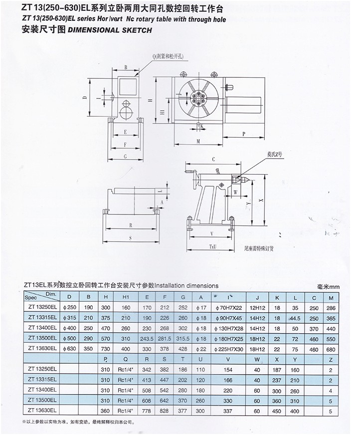 ZT13(250-630)EL系列立臥兩用大通孔數(shù)控回轉(zhuǎn)工作