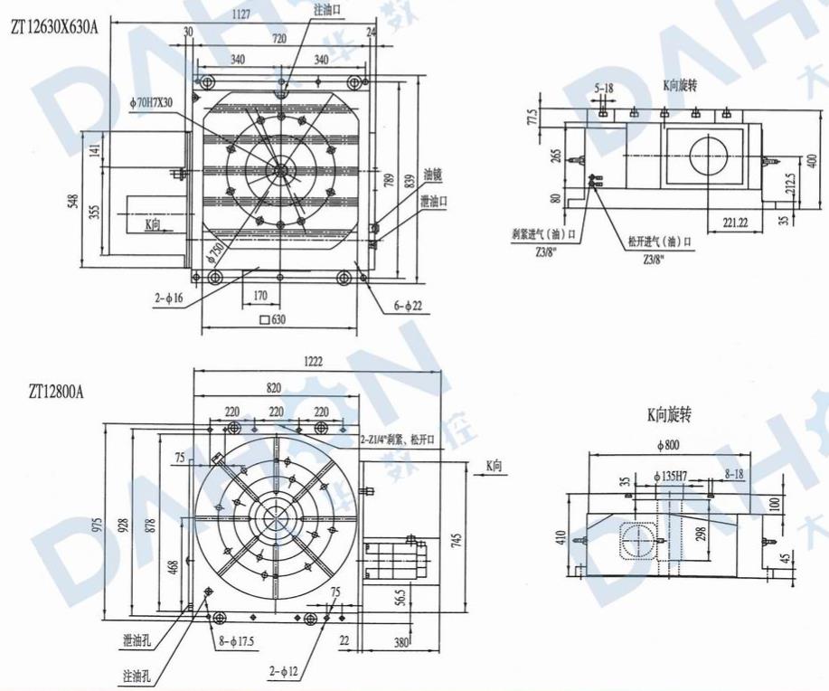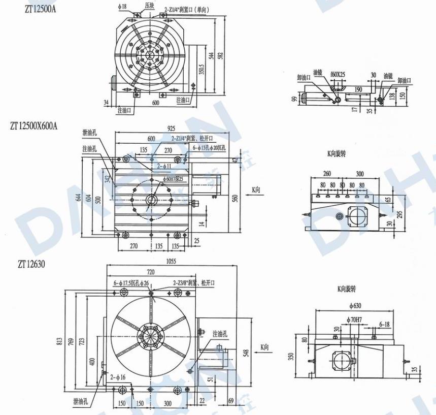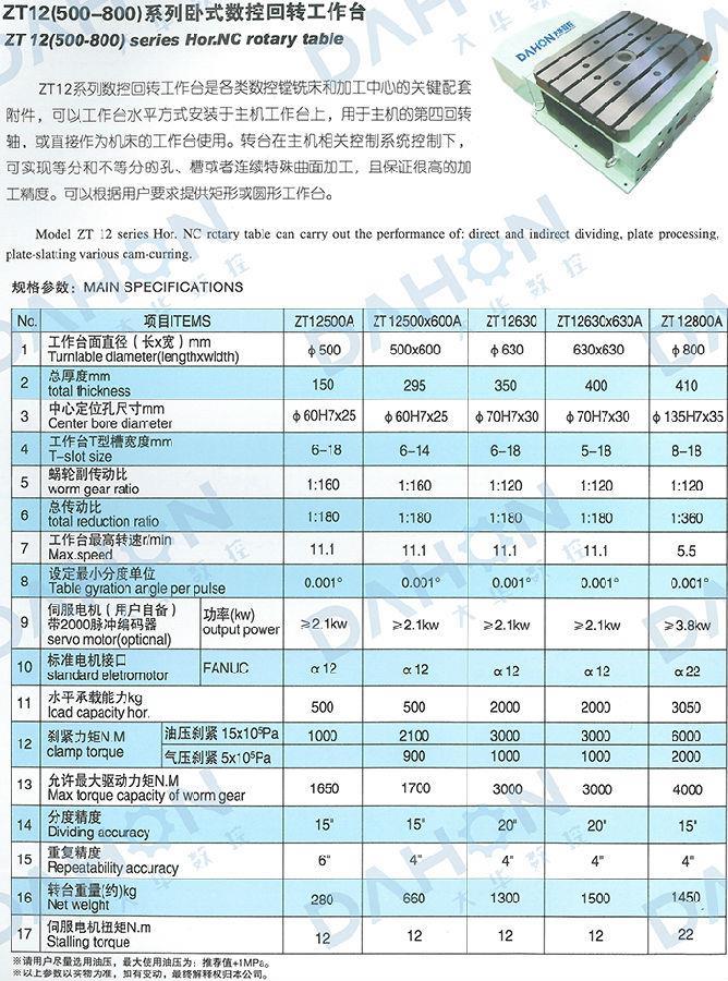 ZT12系列數(shù)控回轉工作臺是各類數(shù)控鏜銑床和加工中心的關鍵配套附件,可以工作臺水平方式安裝于主機工作臺上,用于主機的第四回轉軸,或直接作為機床的工作臺使用。轉臺在主機相關控制系統(tǒng)控制下,可實現(xiàn)等分和不等分的孔、槽或者連續(xù)特殊曲面加工,且保證很高的加工精度??梢愿鶕?jù)用戶要求提供矩形或圓形工作臺。