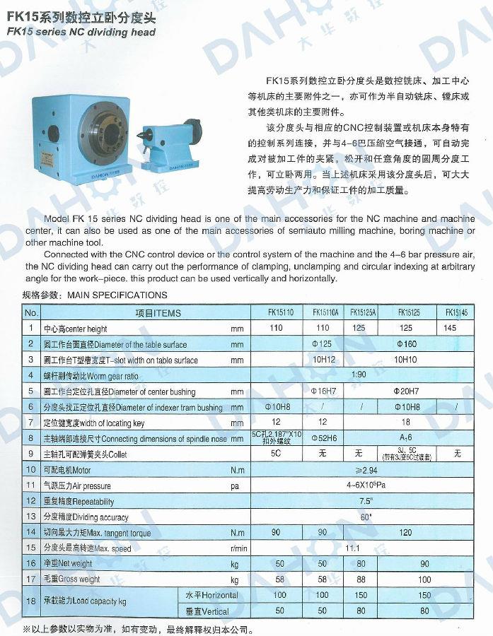 FK15系列數(shù)控立臥分度頭數(shù)控分度盤是數(shù)控銑床、加工中心等機(jī)床的主要附件之一,亦可作為半自動(dòng)銑床、鏜床或其他類機(jī)床的主要附件。